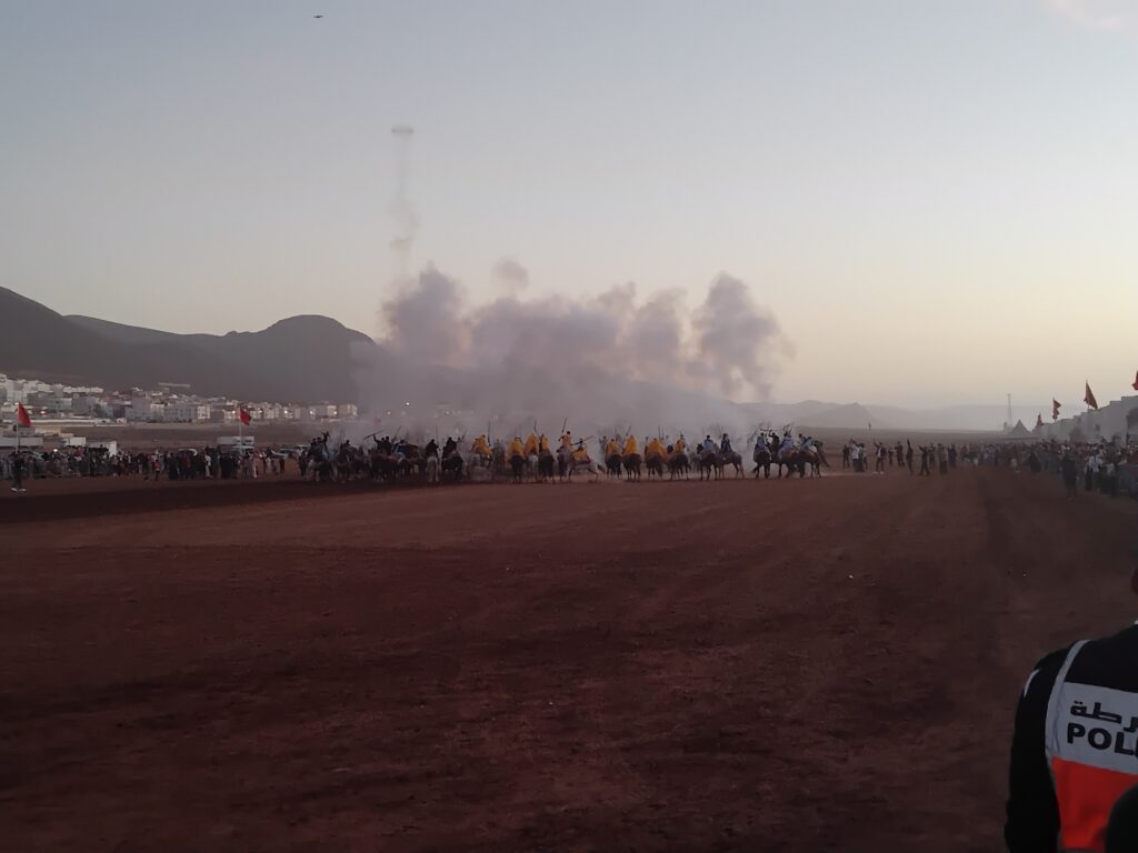 Um den Marsch zu illustrieren hat man in Sidi Ifni einige Reiter herangeschafft, zumal das Symbol der Stadt die Pferde sind, um dann allerdings in die falsche Richtung zu marschieren und Schüsse aus den Büchsen abzugeben.