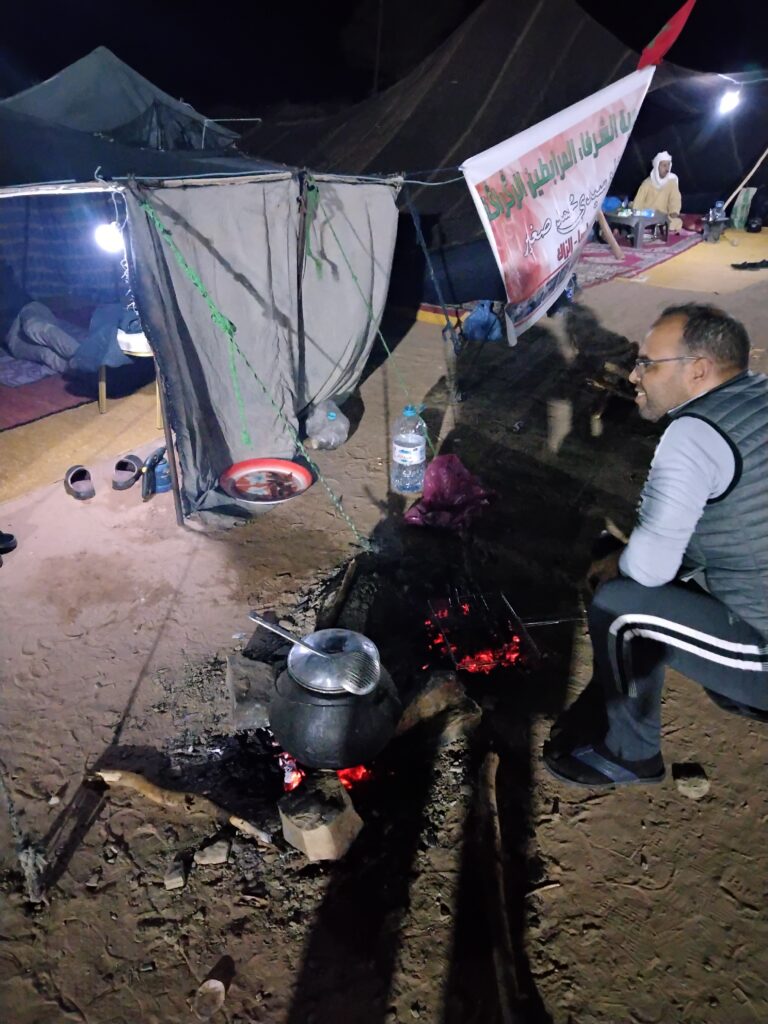 Die Touristen waren relativ gering vertreten mit fünf sechs Wohnmobilen, wovon übrigens zwei aus Deutschland waren mit marokkanischen Männern welche schon lange in Deutschland leben und einen deutschen Pass haben. Mit denen habe ich mich ein wenig unterhalten und beide waren der Meinung das sie Deutschland demnächst verlassen wollen um wieder in Marokko zu leben, da das Leben und die Entwicklung in Deutschland ihnen zu teuer und zu ungünstig für Fremde erscheint. Hingegen die meisten älteren Nomaden in ihren Zelten, wenn sie hörten dass ich aus Deutschland komme, äusserten sich begeistert über Deutschland weil sie noch die Vorstellung von einem Deutschland aus den 80er Jahren hatten, wo es Qualitätsprodukte gab die wirklich noch in Deutschland hergestellt wurden, nicht mehr wie heute wo sie Grossteils aus China kommen. Die Zelte waren fast alle belegt, mit Familien welche ihre traditionelle einheimische Kost am zubereiten waren und sehr gastfreundlich uns einluden etwas davon zu probieren.