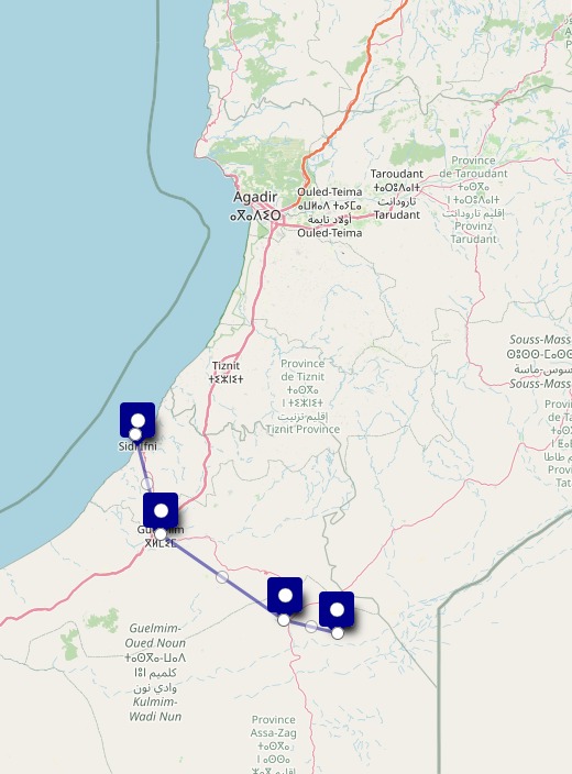 Einen Mitorganisator den ich zufällig in Sidi Ifni getroffen hatte lud mich ein dieses Festival einmal zu besuchen. Interessanterweise gab es im Internet so gut wie überhaupt keine Werbung für dieses Festival, nach einem Anruf bei der Tourismusinformation in Assa wurde aber das Stattfinden dieses Festivals zum besagten Zeitpunkt bestätigt. Also machte ich ich mich auf die Reise von Sidi Ifni ueber Guelmin, Assa, nach Touizgui.